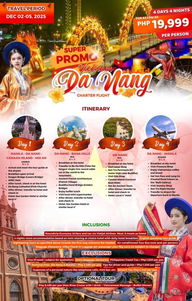 For as low as β±19,999, enjoy 4 Days of Ba Na Hills, Golden Bridge, and cozy hotel stays!